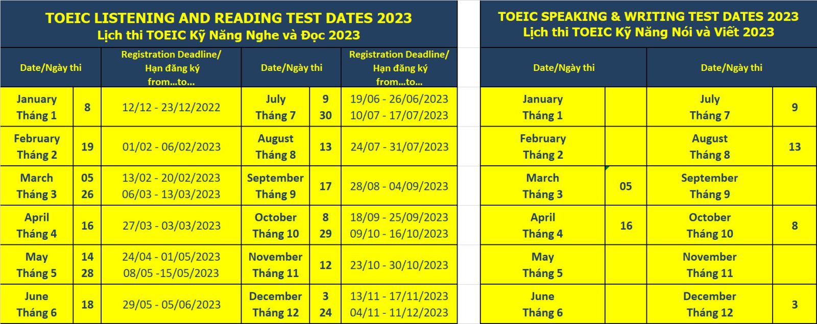 VIỆN ĐÀO TẠO QUỐC TẾ THÔNG BÁO LỊCH THI TOEIC NGHE VÀ ĐỌC, NÓI VÀ VIẾT NĂM 2023 (DỰ KIẾN)