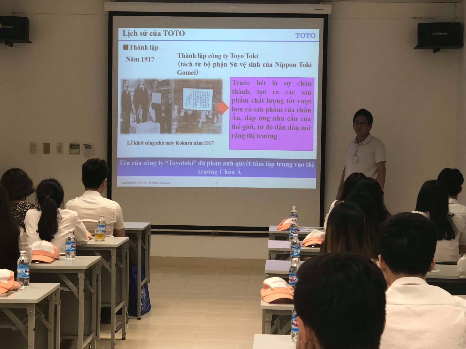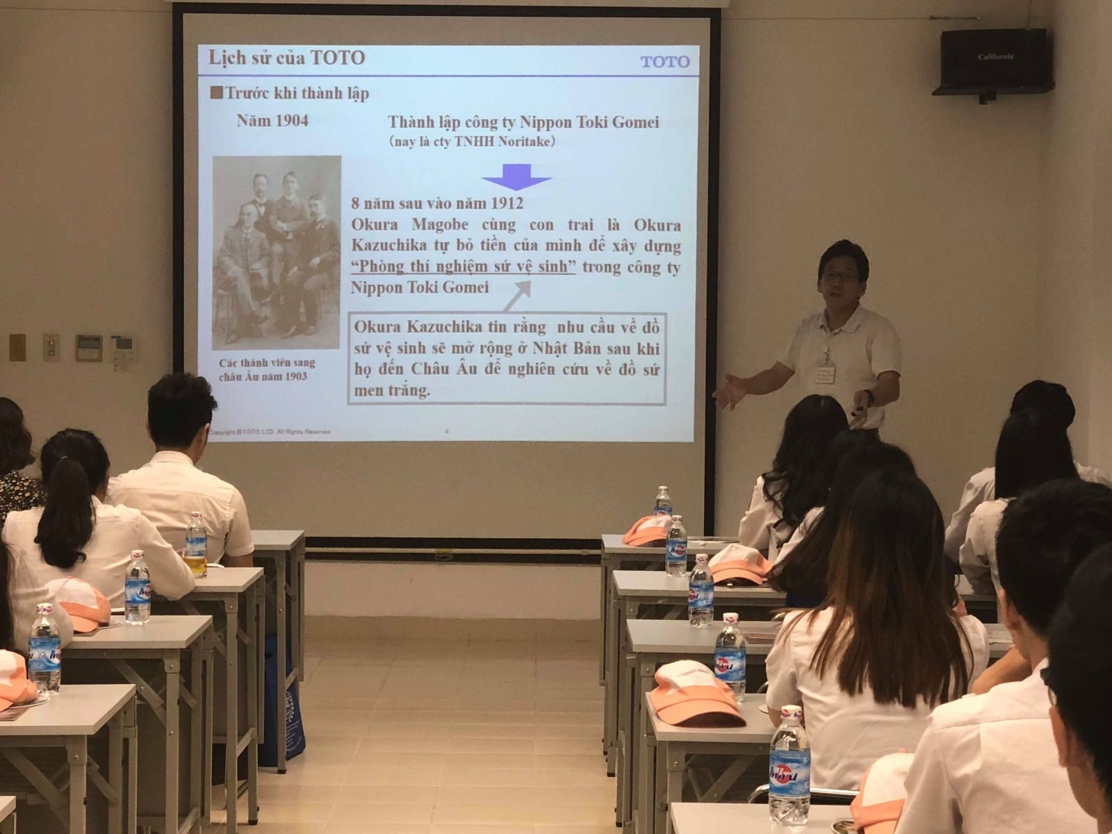 Tại công ty, các bạn sinh viên đã được tiếp đón nồng nhiệt và được nghe giới thiệu về lịch sử hình thành và phát triển tại công ty bởi ông YAMASAKI MASAO – Tổng giám đốc công ty. Tiếp đó, các bạn di chuyển tới phân xưởng lắp ráp và được giới thiệu về quy trình lắp ráp các thiết bị vệ sinh với quy mô hàng nghìn chiếc xuất xưởng trong ngày.