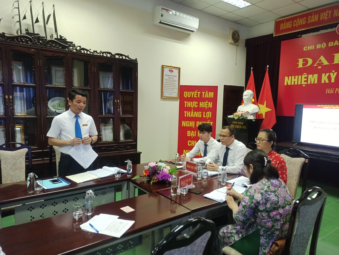 Đại hội đã thông qua dự thảo báo cáo chính trị của Chi bộ nhiệm kỳ 2015 - 2020, phương hướng, nhiệm vụ, giải pháp nhiệm kỳ 2020 - 2025 và góp ý vào dự thảo báo cáo chính trị Đại hội Đảng bộ Trường Đại học Hàng hải Việt Nam (Nhiệm kỳ 2020 – 2025). Báo cáo đã đánh giá toàn diện những kết quả đạt được, những tồn tại, hạn chế, nguyên nhân hạn chế, bài học kinh nghiệm và đề ra phương hướng, nhiệm vụ, giải pháp chủ yếu nhằm thực hiện thắng lợi Nghị quyết nhiệm kỳ 2020 - 2025.