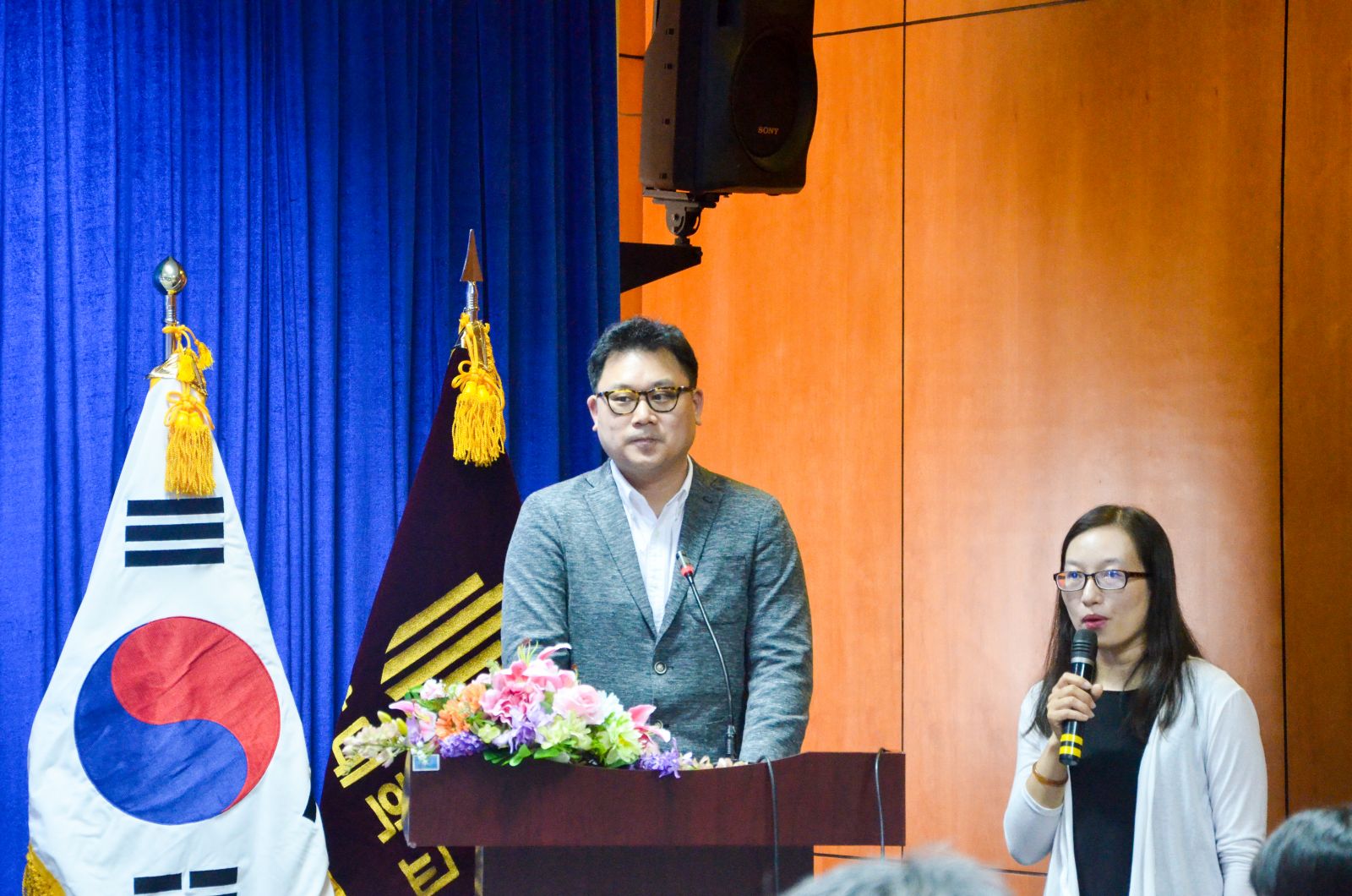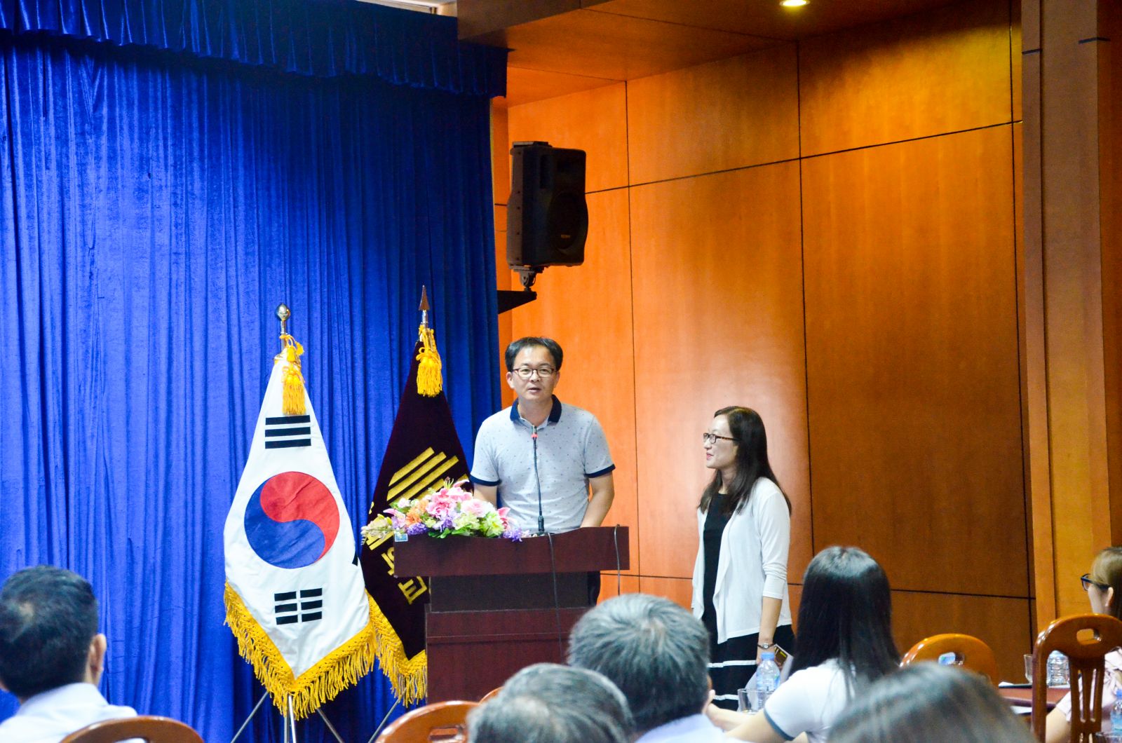 Đại diện ĐH Hosan - Hàn Quốc (Thầy Hiệu phó GS. Kim JaeHuyn) phát biểu trong buổi lễ