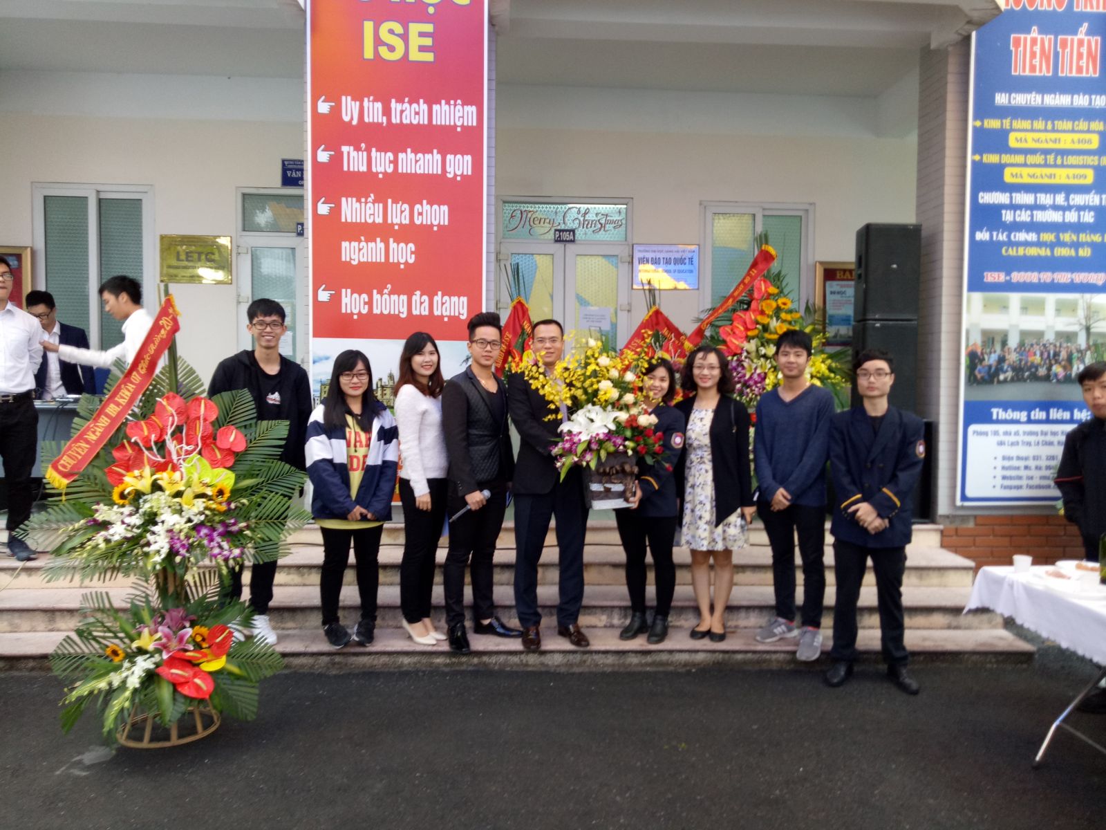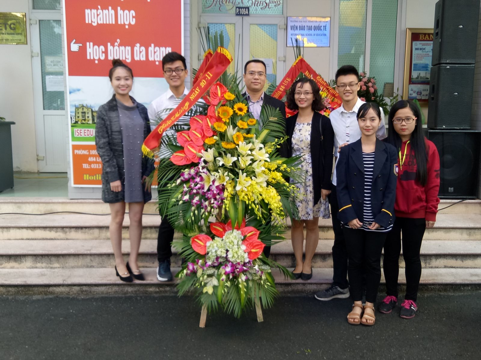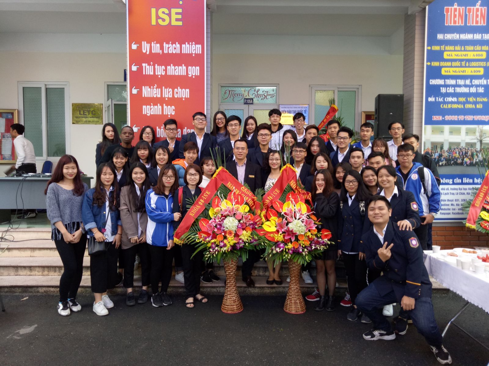 Các bạn sinh viên khóa 08 - CTTT tặng hoa chúc mừng thầy cô lãnh đạo Viện ĐTQT.