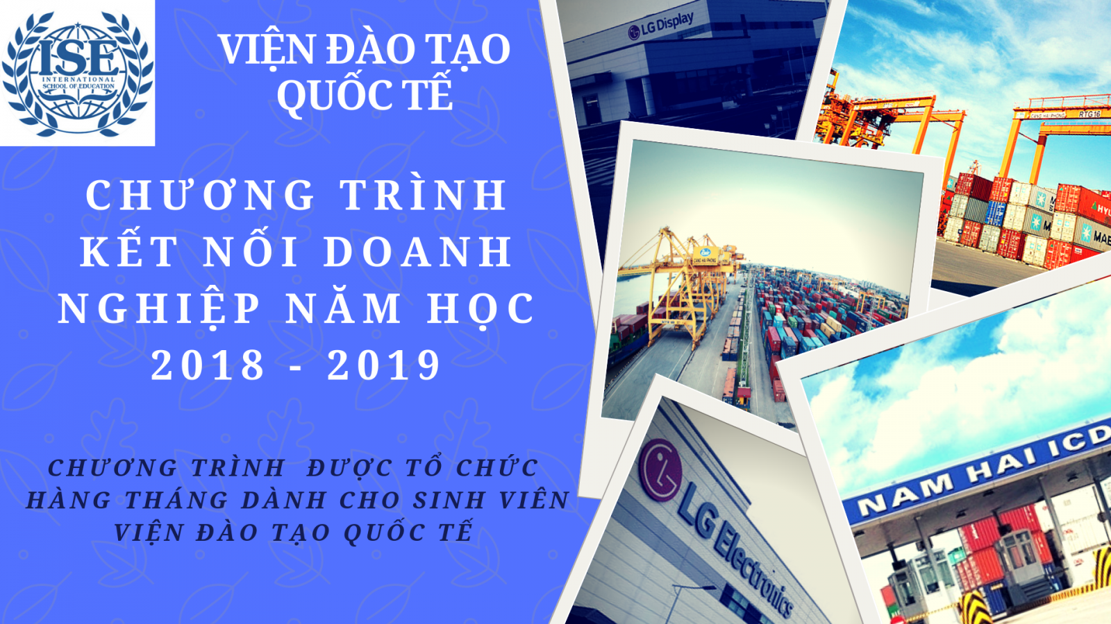 Trong tháng 10, tháng 11 năm 2018, Viện Đào tạo Quốc tế sẽ phối hợp với các doanh nghiệp lớn trên địa bàn thành phố Hải Phòng tổ chức các buổi tham quan thực tế tại doanh nghiệp dành cho các bạn sinh viên đang học tập tại VĐTQT.