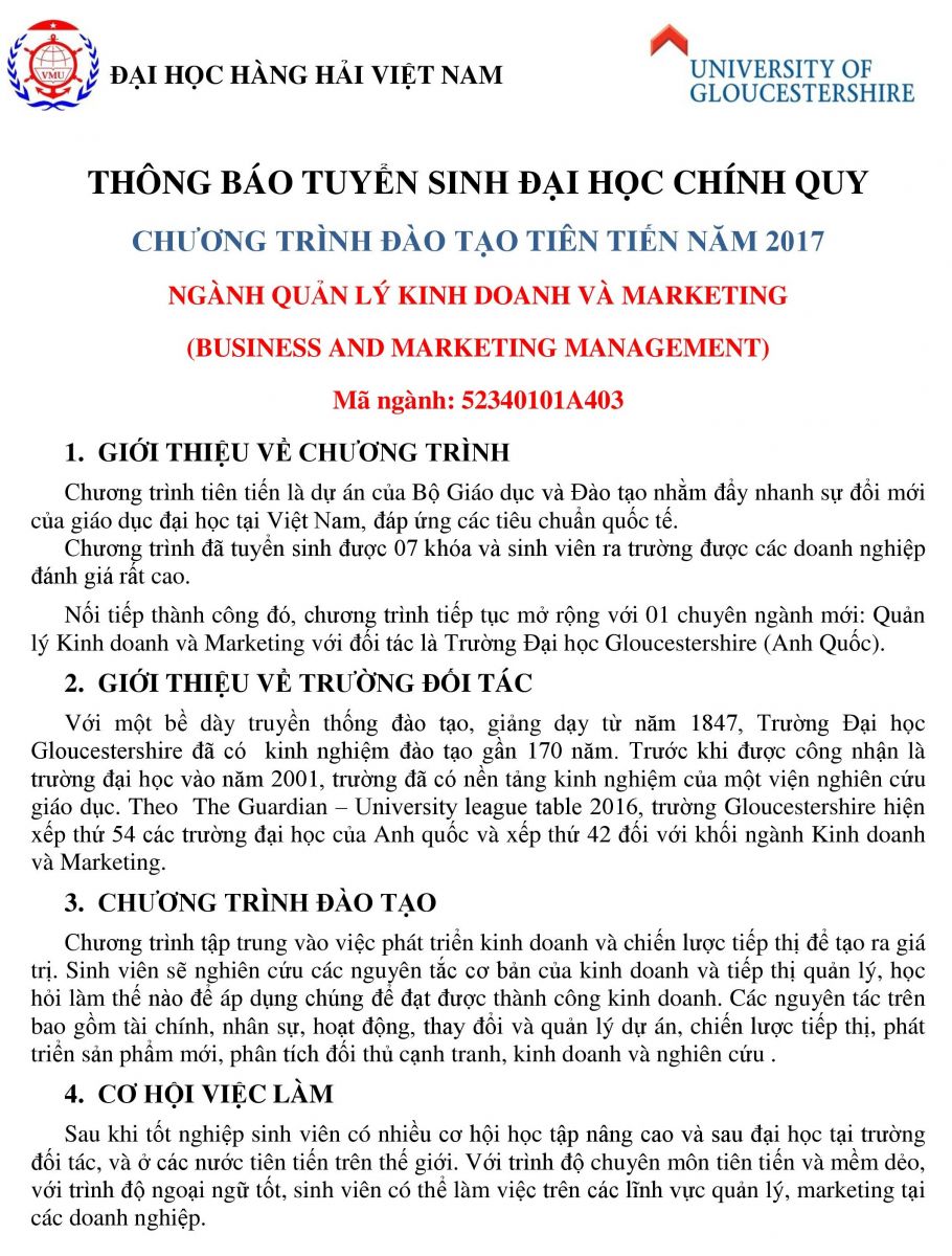 Nối tiếp thành công đó, chương trình tiếp tục mở rộng với 01 chuyên ngành mới: Quản lý Kinh doanh và Marketing với đối tác là Trường Đại học Gloucestershire (Anh Quốc).