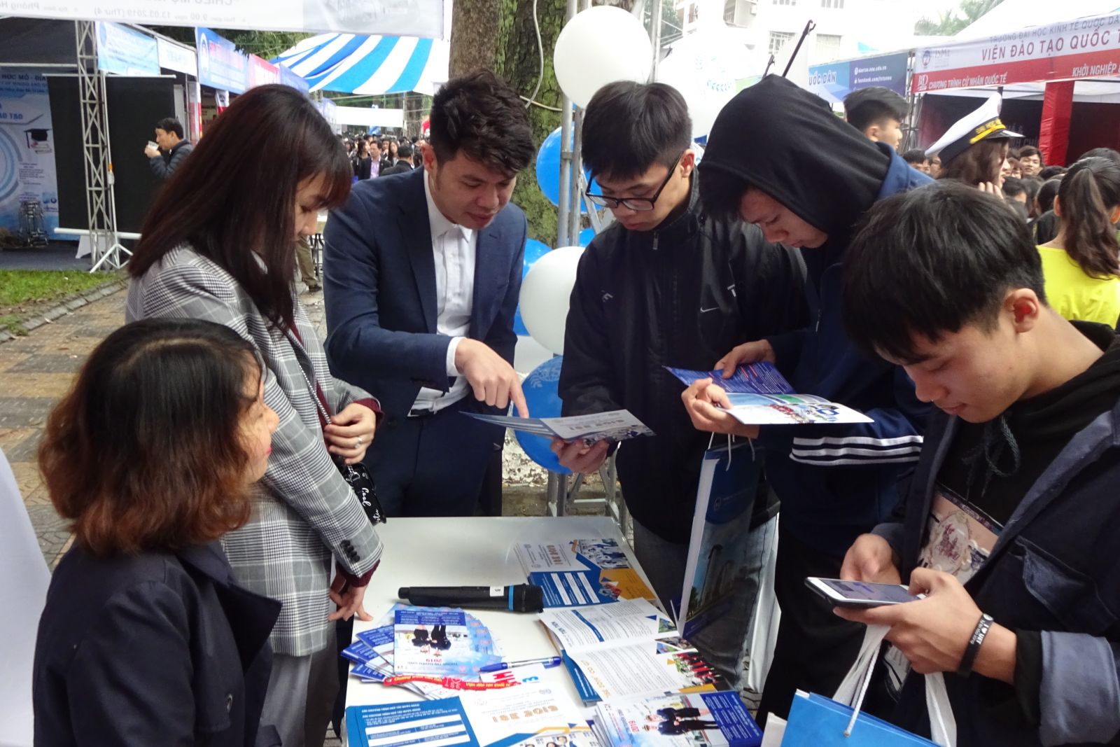 Năm nay, được sự ủy thác của Ban giám hiệu trường Đại học Hàng hải Việt Nam, Viện Đào tạo Quốc tế đã hoàn thành tốt các công tác chuẩn bị tư vấn tuyển sinh từ rất sớm. Tại ki-ốt được phân công trong chương trình, các bạn học sinh đã được các cán bộ, nhân viên của Viện ĐTQT giới thiệu, giải thích cặn kẽ những thông tin tuyển sinh của trường ĐH Hàng hải Việt Nam và của Viện. Năm nay, Viện ĐTQT tuyển sinh hơn 220 chỉ tiêu cho 3 chuyên ngành đào tạo đó là Kinh tế Hàng hải ( GMA ) , Kinh doanh quốc tế & Logistics ( IBL ) và Quản lý kinh doanh & Marketing ( BMM ).